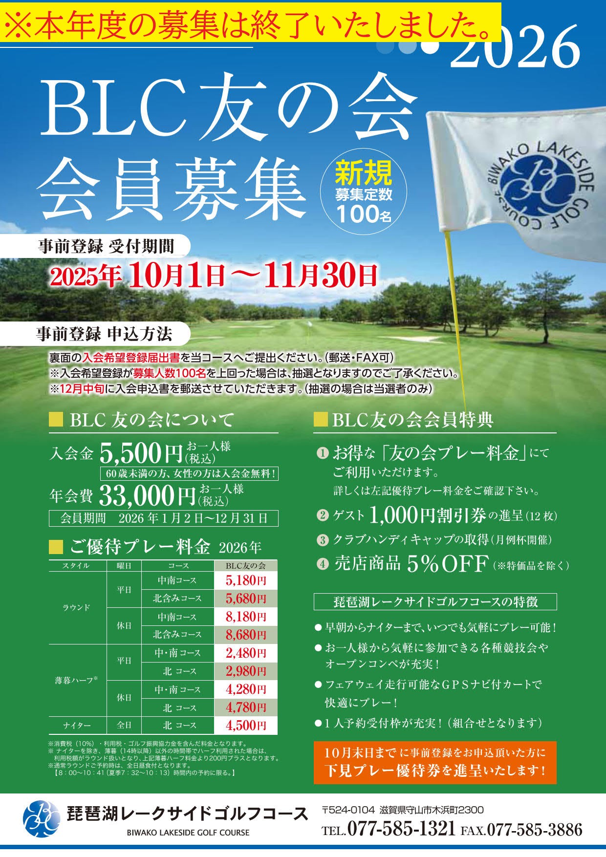 【※募集終了】2026年・年次会員BLC友の会 新規会員募集のご案内