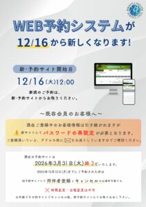 12/16(火)に新予約サイトが公開後、新規登録をしていただくようお願いいたします。